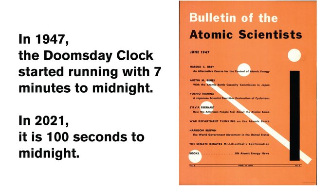 Bulletin Of The Atomic Scientists On Twitter Join Us At 10 Am Est On January 27 2021 As The Bulletin Announces The 2021 Time Of The Doomsday Clock Learn More Https T Co Fflsacjx01 Doomsdayclock